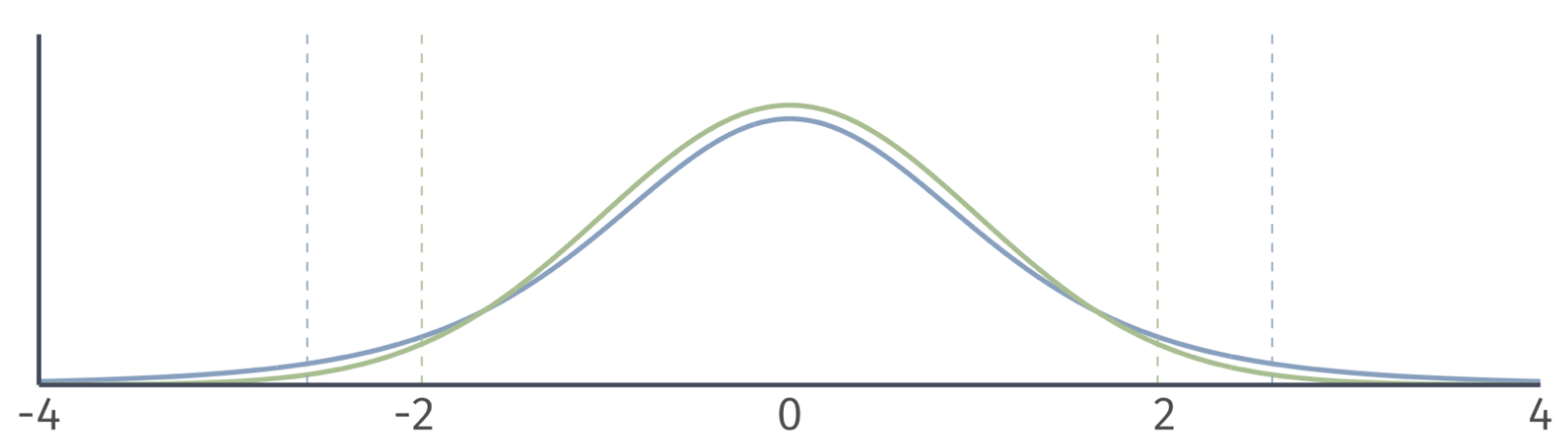 Alternative: Compare \(\color{#434C5E}{t}\)-statistic to critical values from the \({\color{#434C5E} t}\)-distribution.