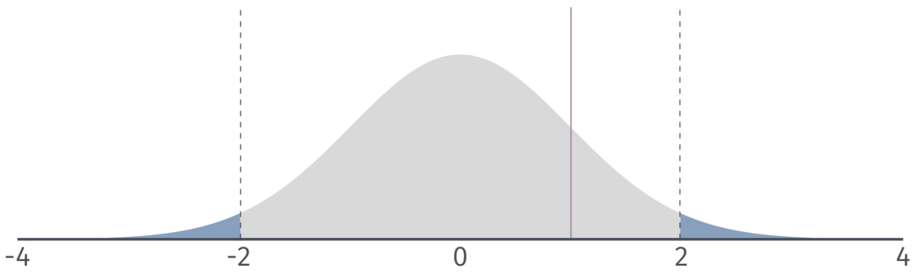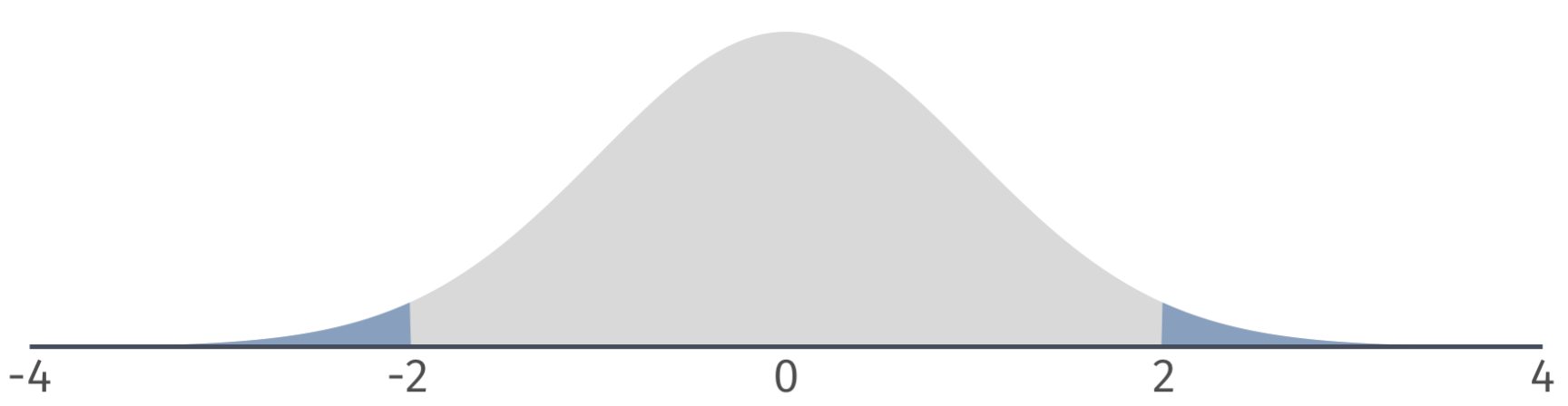 \[ \left| t \right| = \left| \dfrac{\hat{\mu} - \mu_0}{\mathop{\text{SE}}(\hat{\mu})} \right| > t_\text{crit}. \]