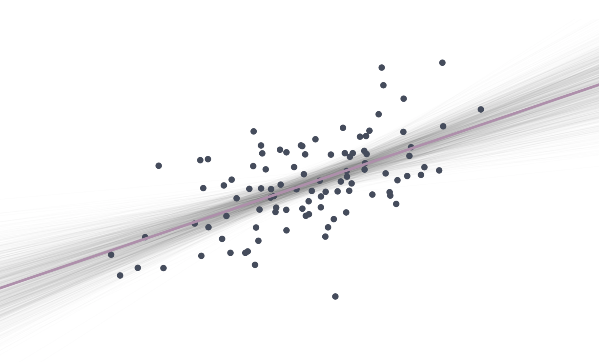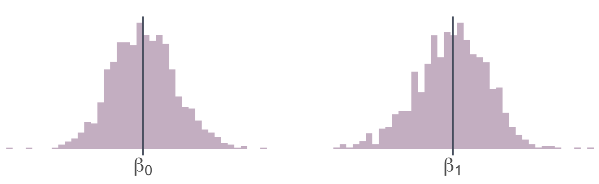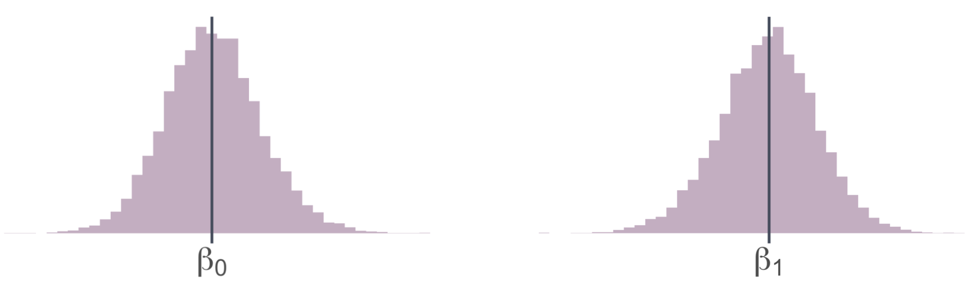 We drew 10,000 samples (each of size \(n = 30\)) from our population and estimated our regression model for each sample: