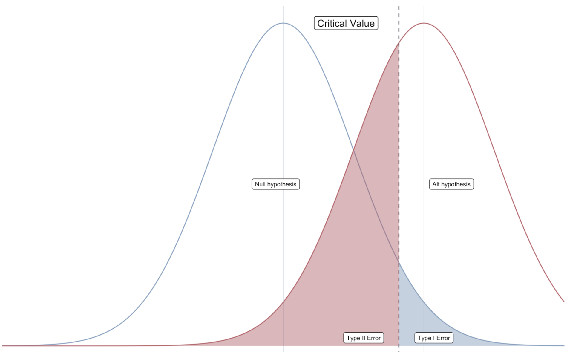 We worry mostly about false positives, so we conduct hypothesis tests based on the probability of making a Type I error1.