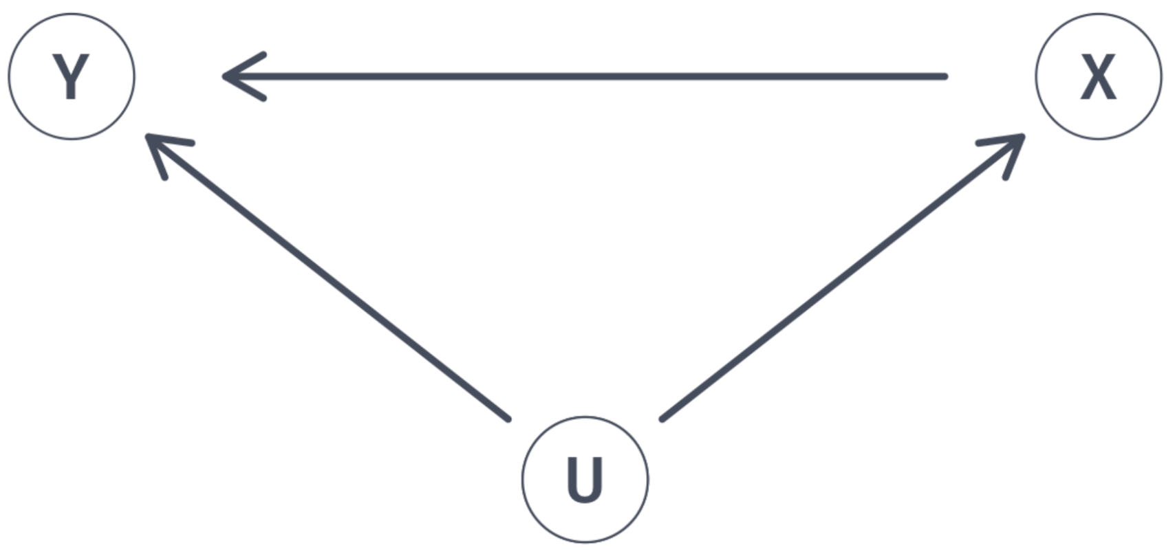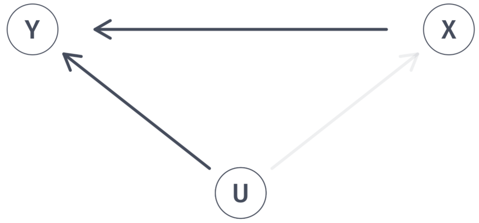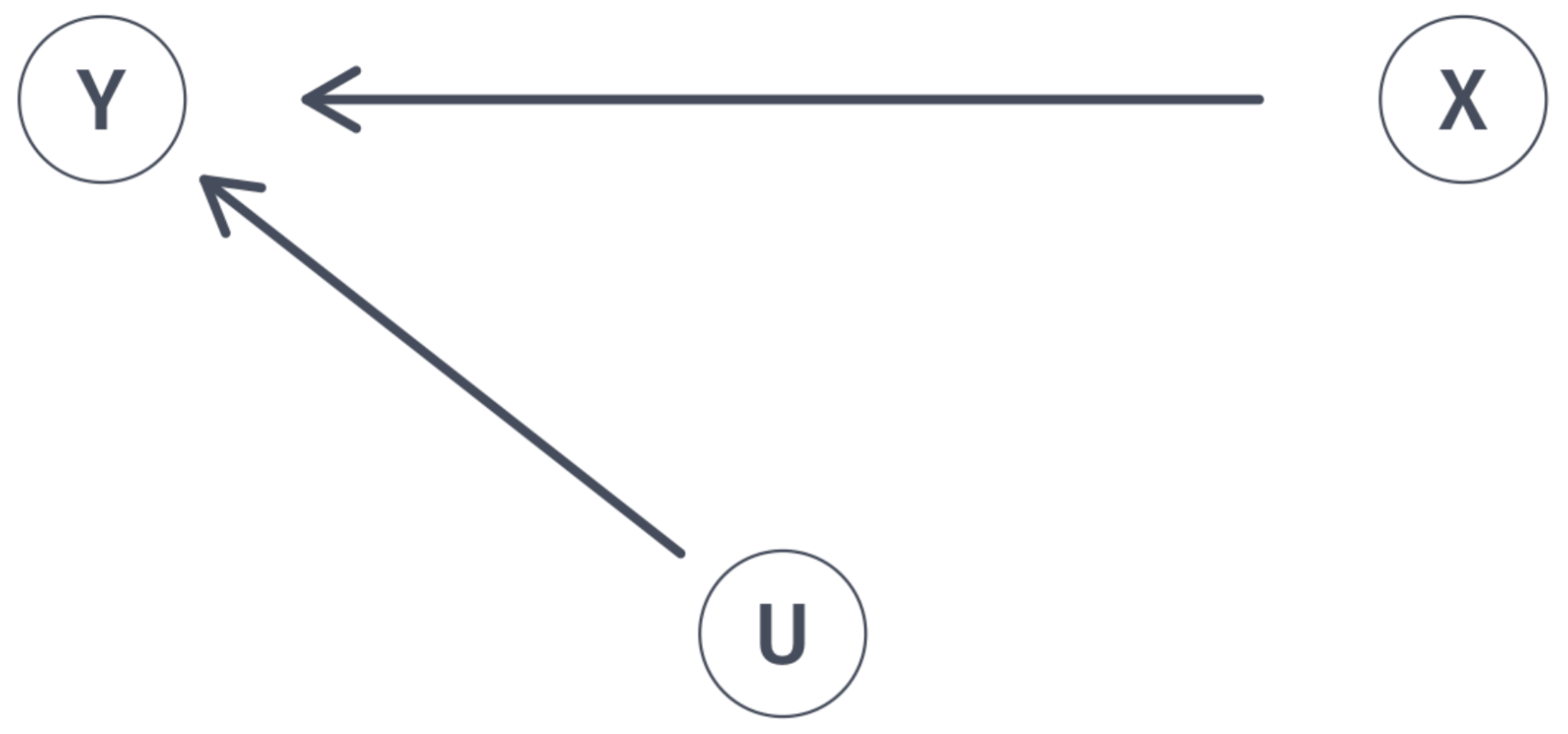 Graphically… Invalid exogeniety, i.e., \(\mathop{\mathbb{E}}\left( u \mid X \right) \neq 0\)