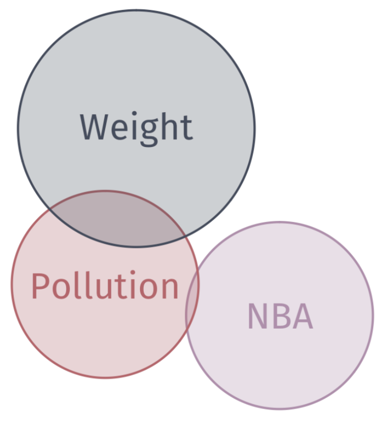 \[ (\text{Birth Weight})_i = \tilde{\beta_0} + \tilde{\beta_1} \text{Pollution}_i + \tilde{\beta_2}\text{NBA}_i + u_i \]