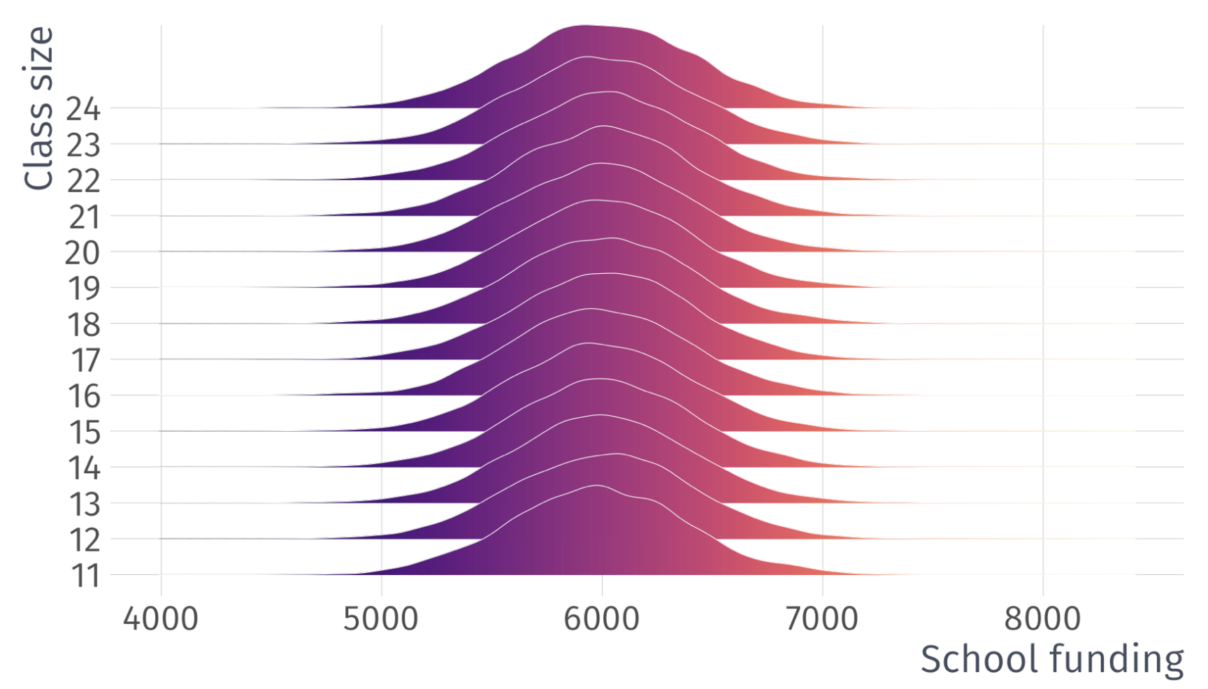 Correlation between class size and school funding (\(u_i\)) is not zero.