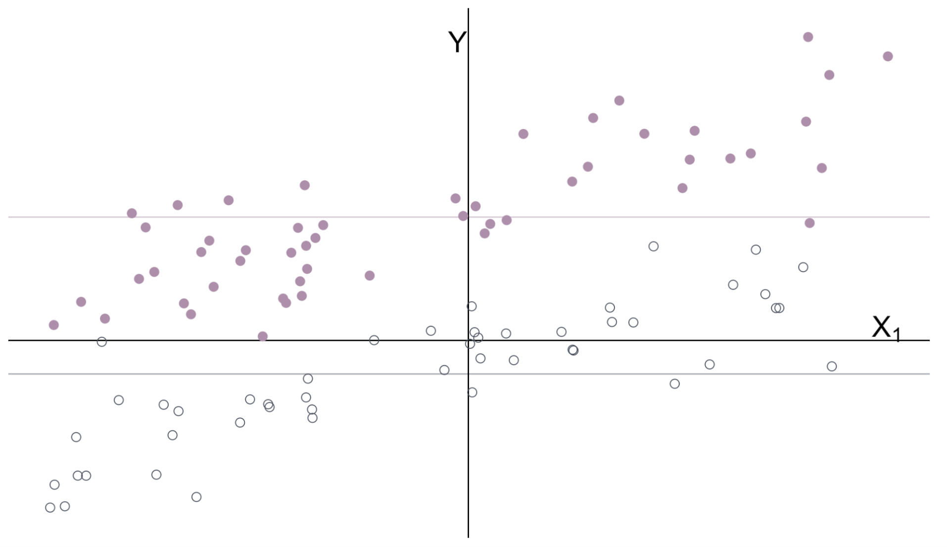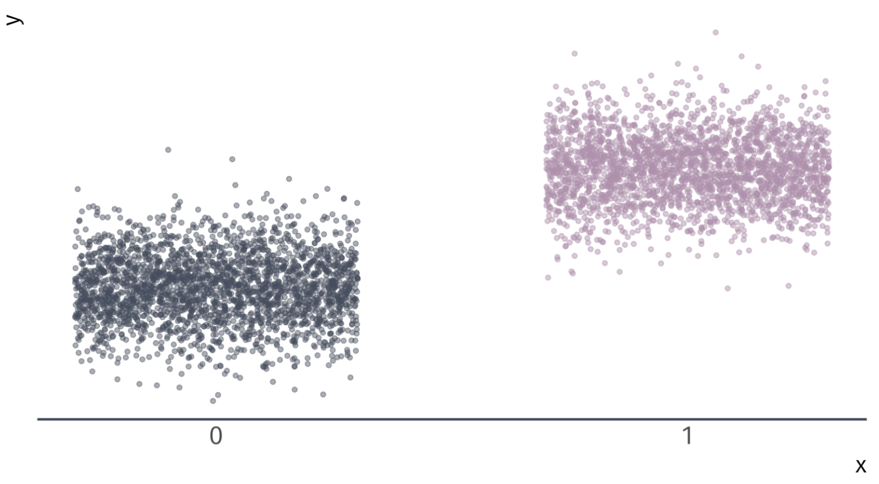 \(Y_i = \beta_0 + \beta_1 X_i + u_i\) for binary variable \(X_i = \{\color{#434C5E}{0}, \, {\color{#B48EAD}{1}}\}\)