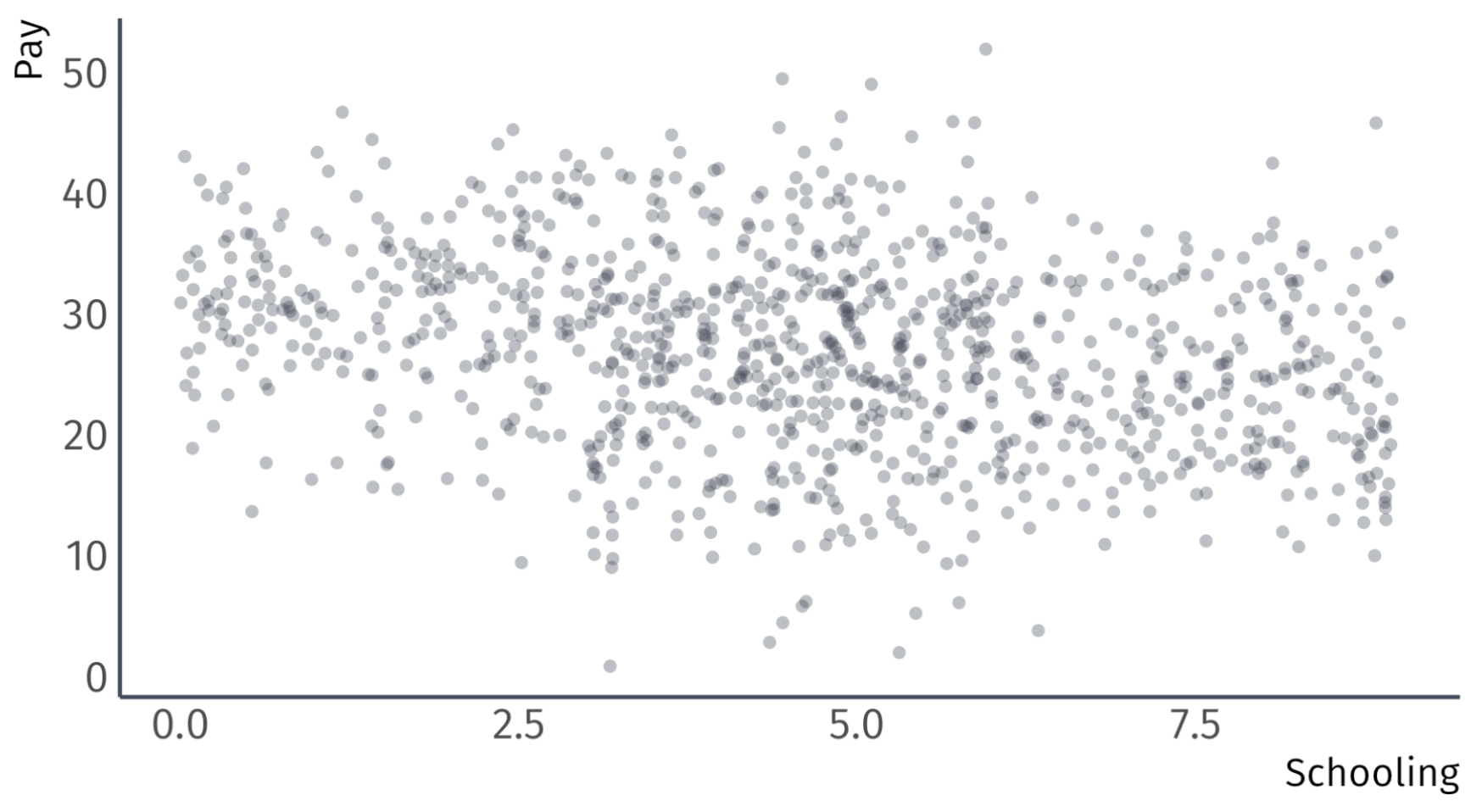 \[ \text{Pay}_i = \beta_0 + \beta_1 \text{School}_i + u_i \]