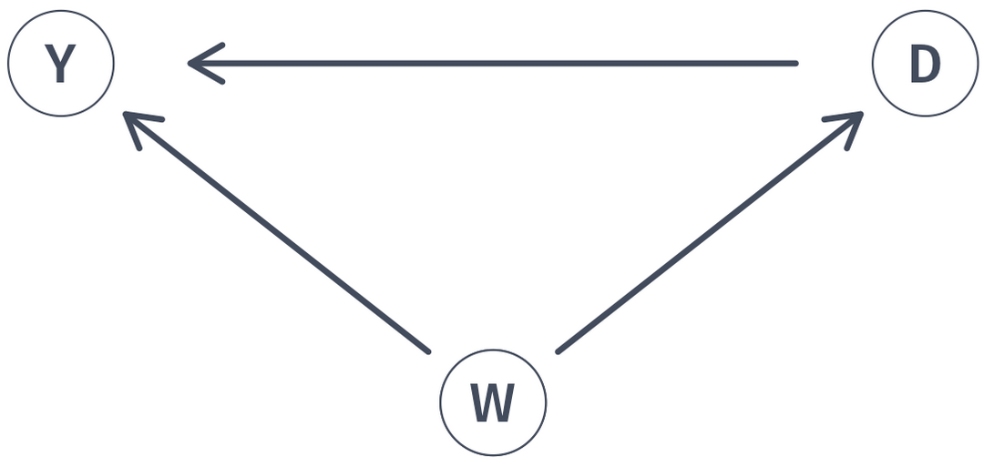 But parental income (W) impacts both student welfare (Y) and living on campus (D). Failing to account for parental income will bias comparisons