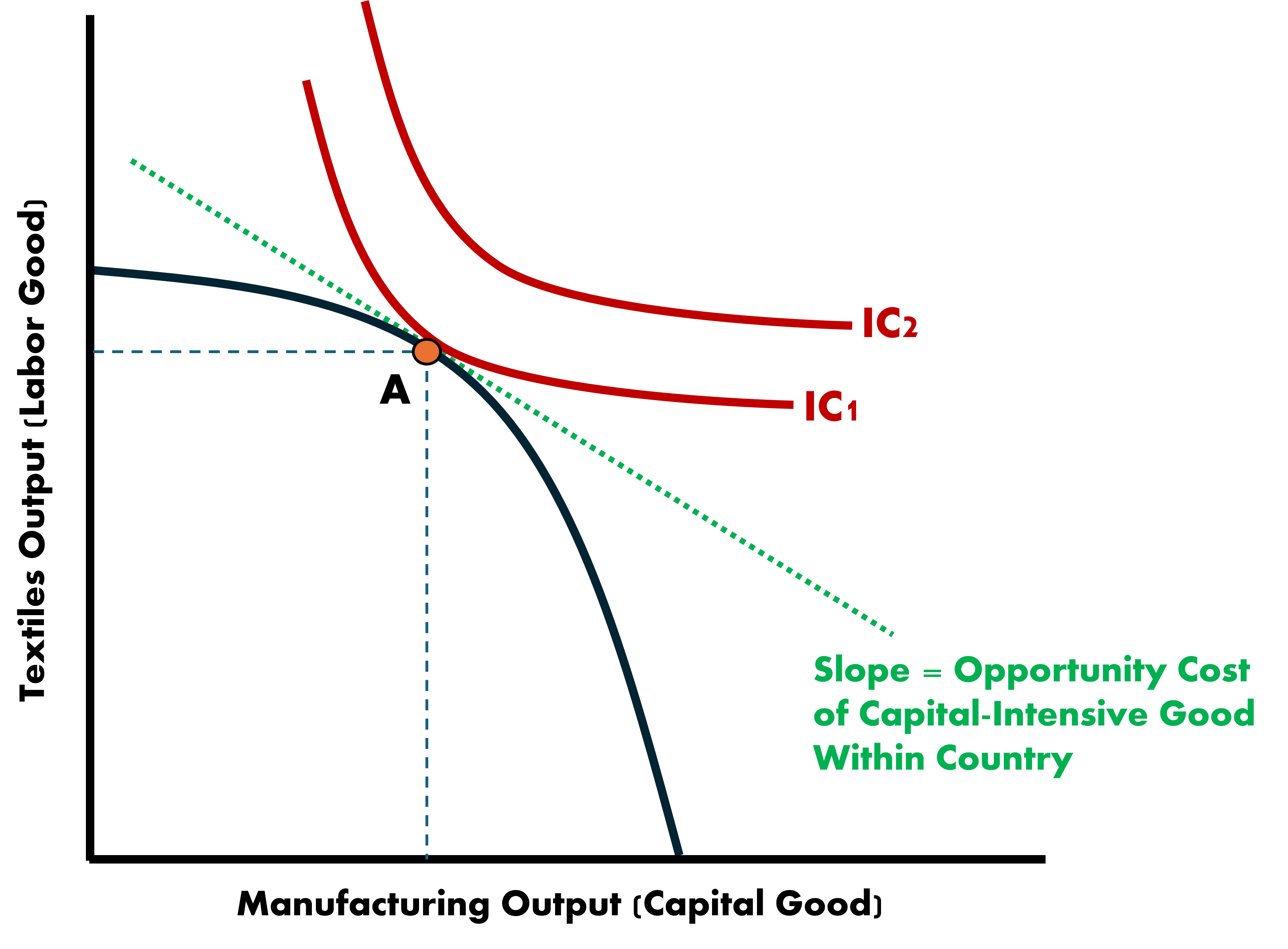 The country must produce where the opportunity cost is equal to the relative world price slope