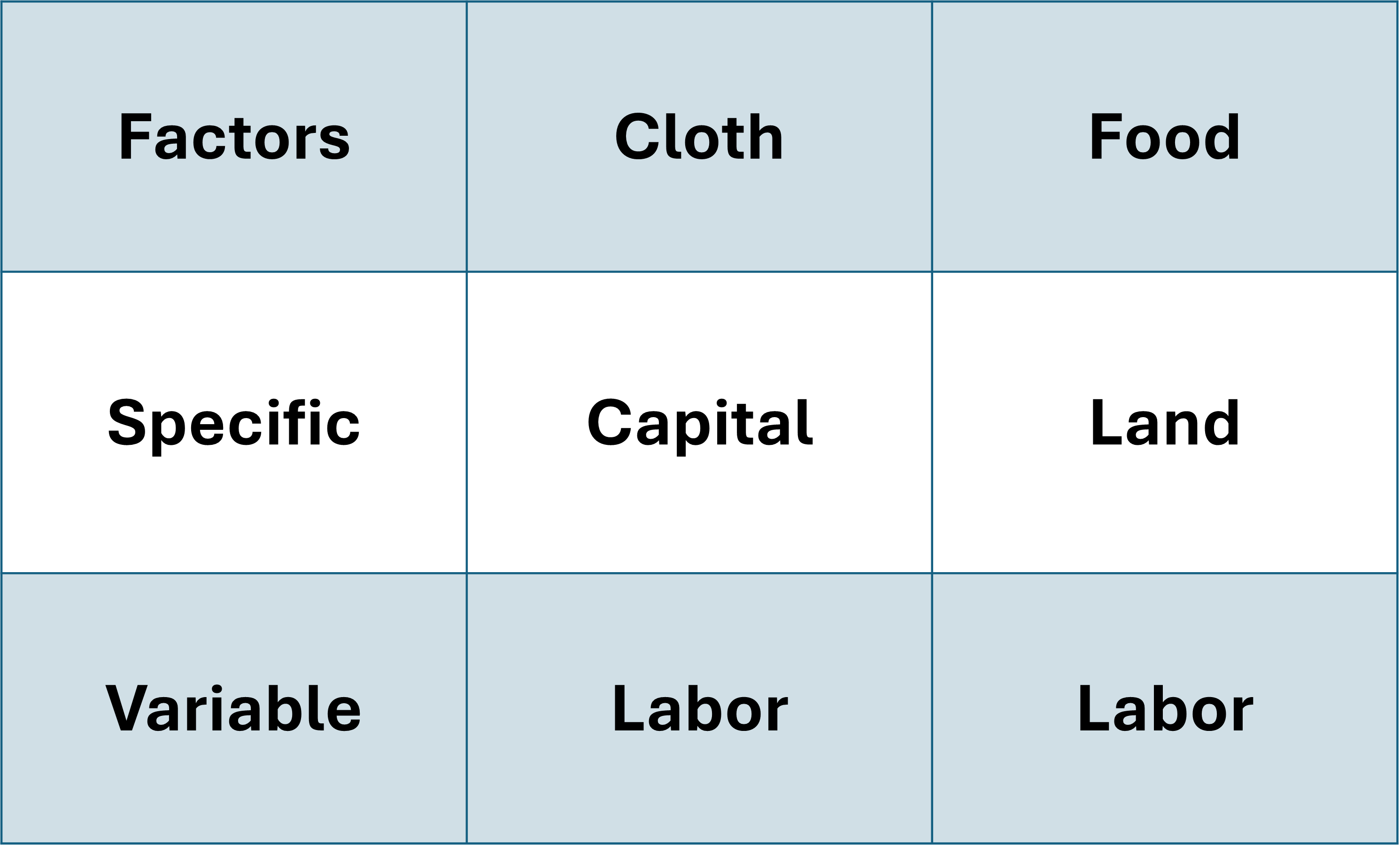 With these modifications to the HO Model, we have now extended it into a Specific Factors Model