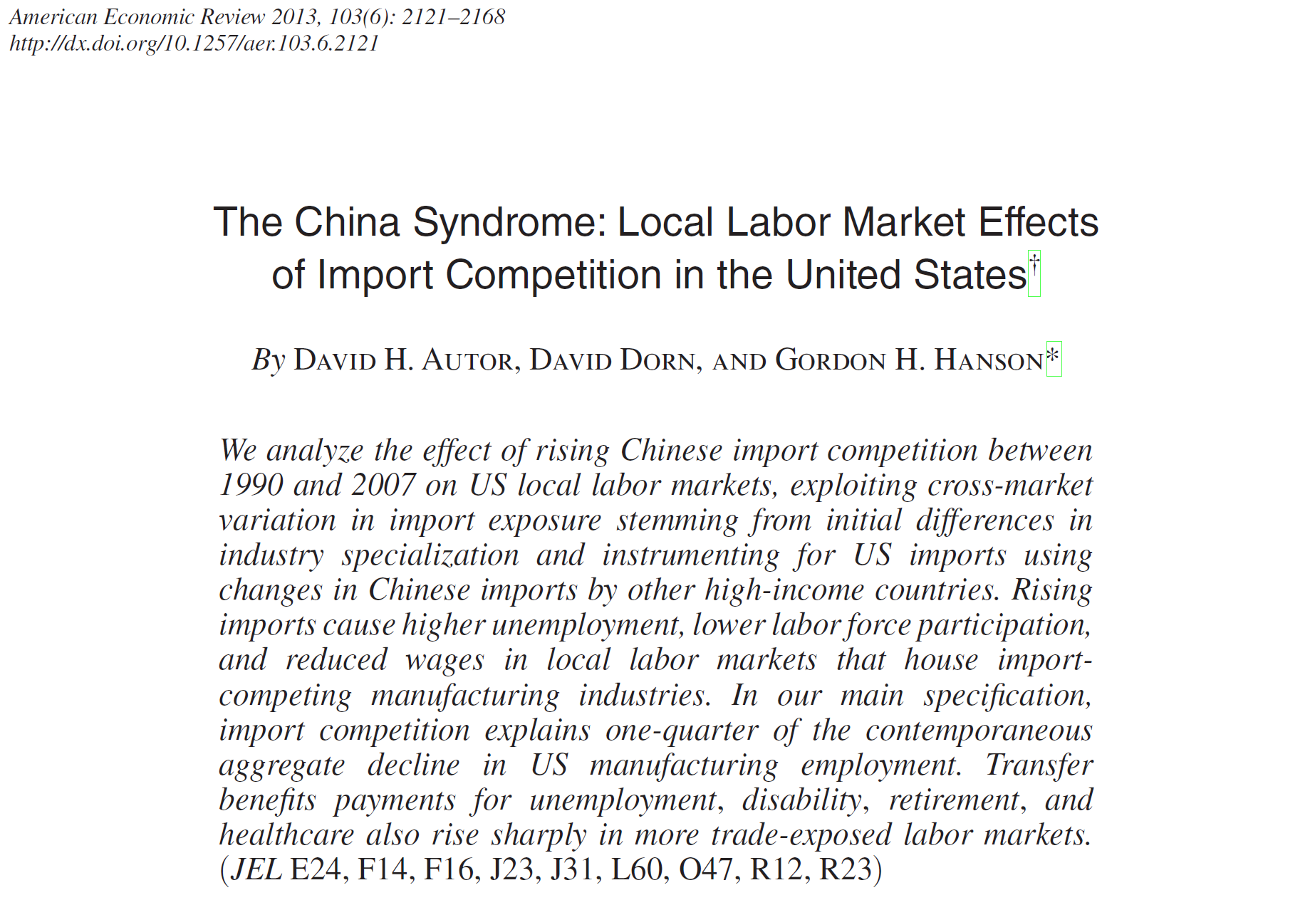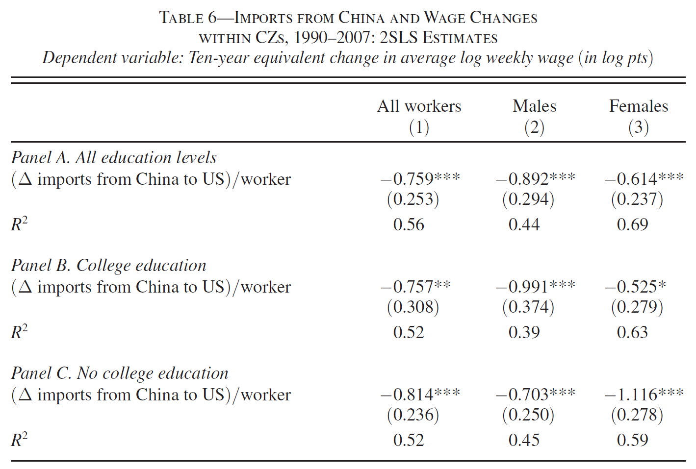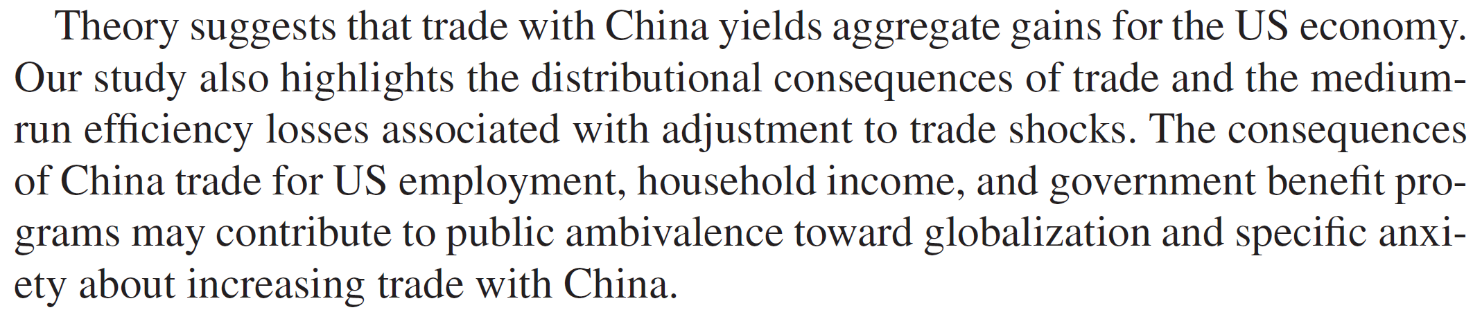 We have workers in import-competing sectors earning lower wages than average and facing a higher risk of unemployment