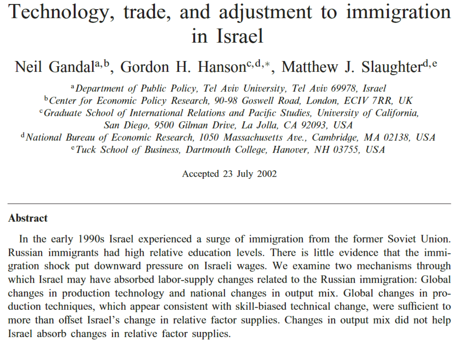 Now we will focus on issues of trade with respect to jobs, wages, migration, and political economy