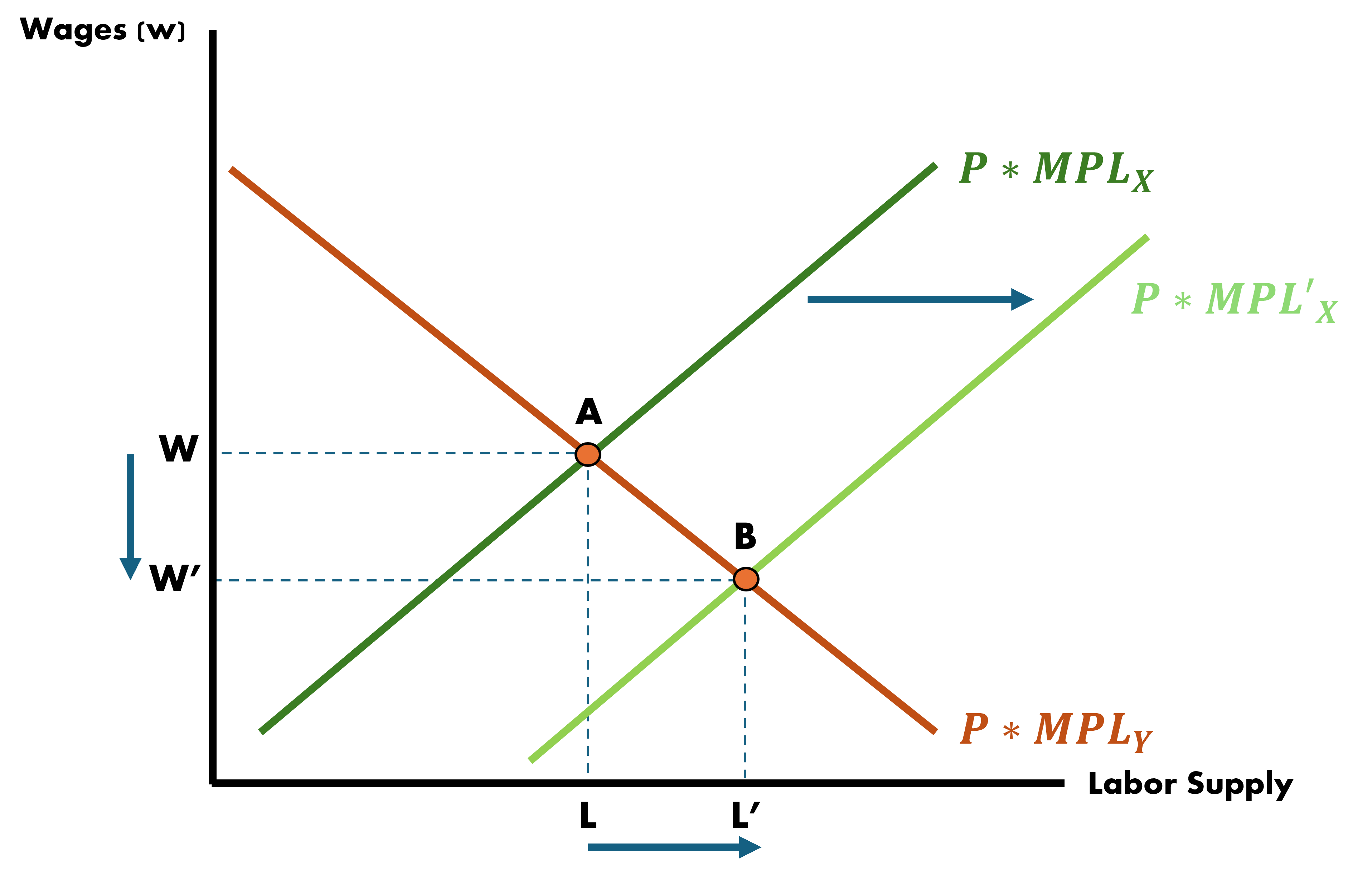 Let’s view a stylized example of how migration may impact local labor markets in the Short-Run