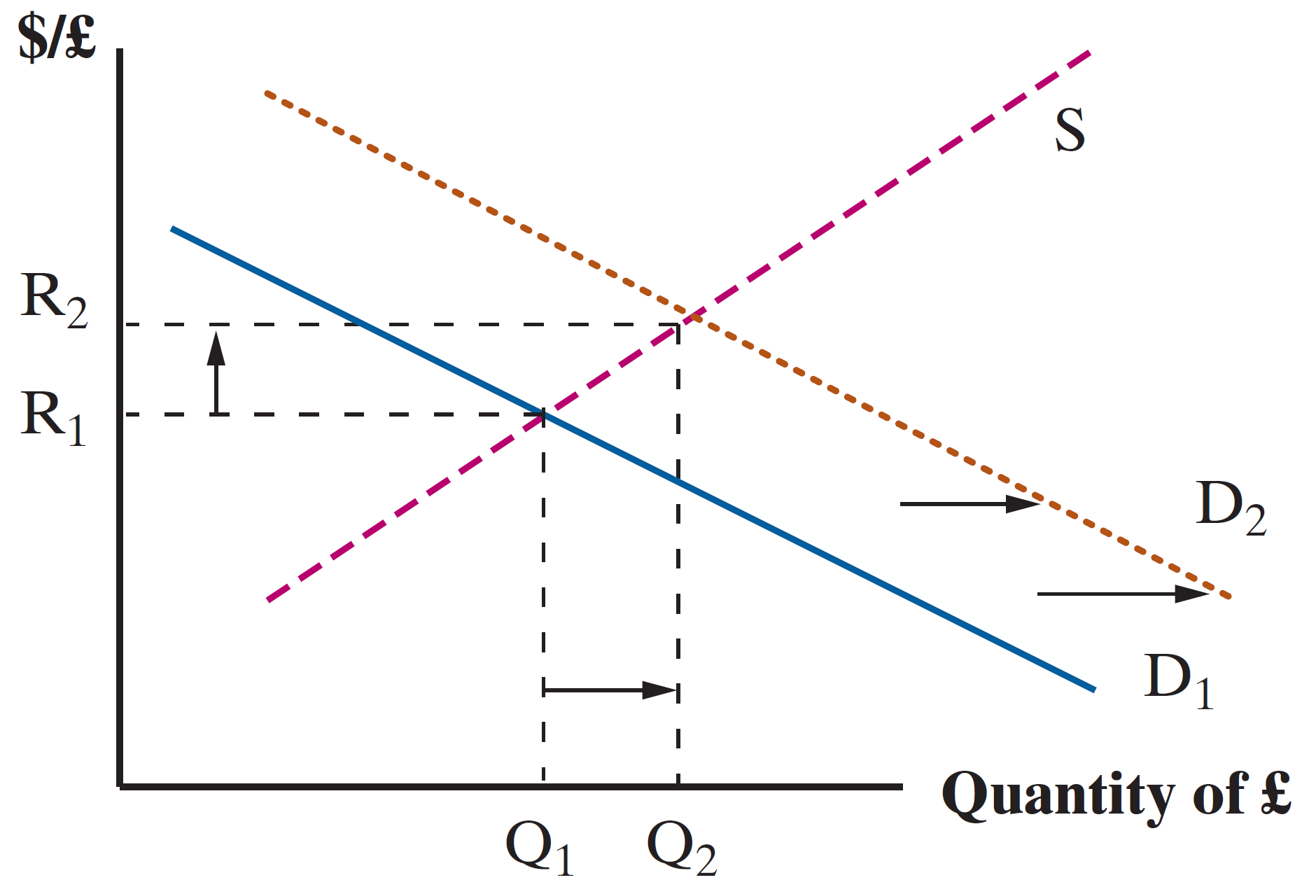 US incomes increase, demand for UK imports increases, so demand for GBP increases