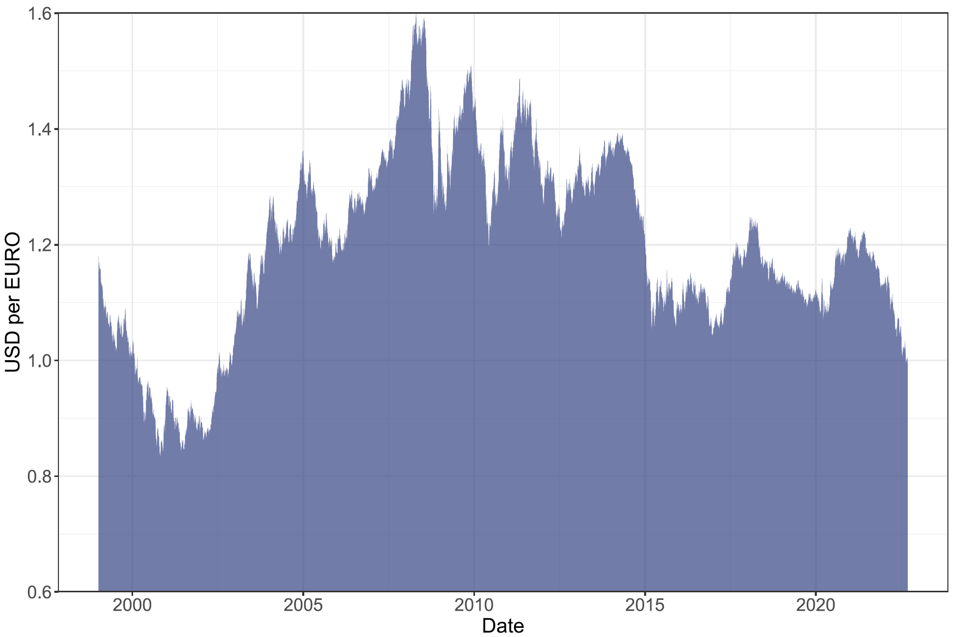 \[ \Rightarrow 1 = \dfrac{F_{\text{USD/EUR}}}{E(F)_{\text{USD/EUR}}} \]