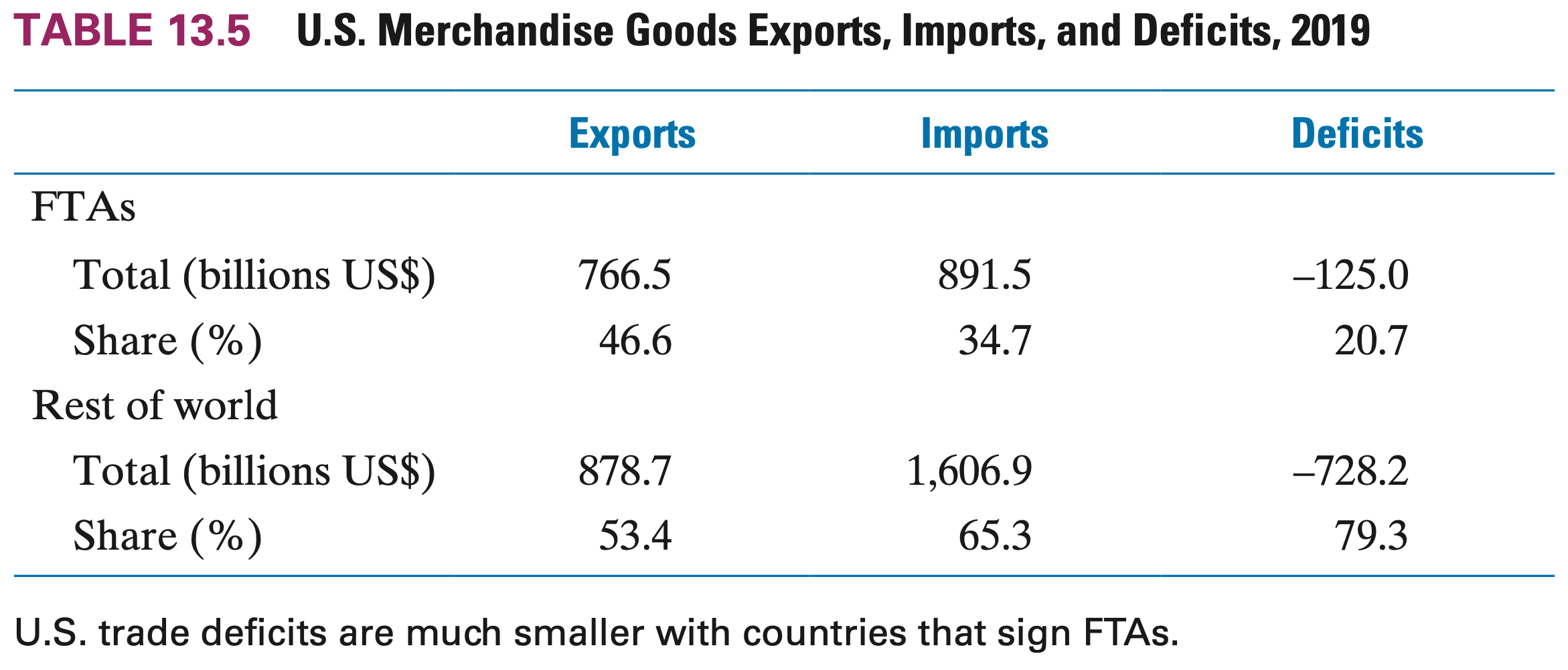 The US has much less unbalanced trade with the countries that have signed FTAs