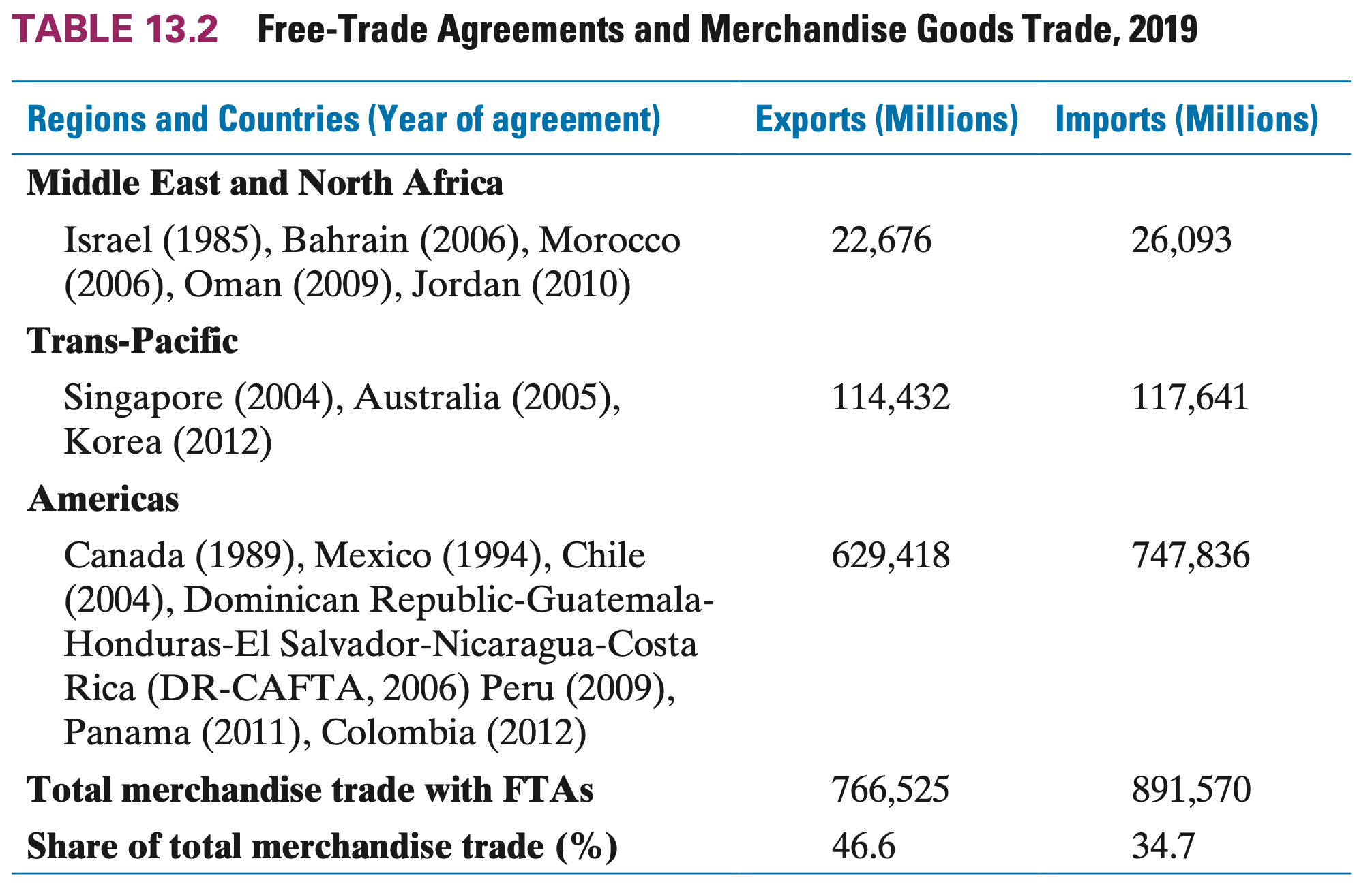The US currently has Free Trade Agreements (FTA) with twenty countries grouped into three strategic geographical regions
