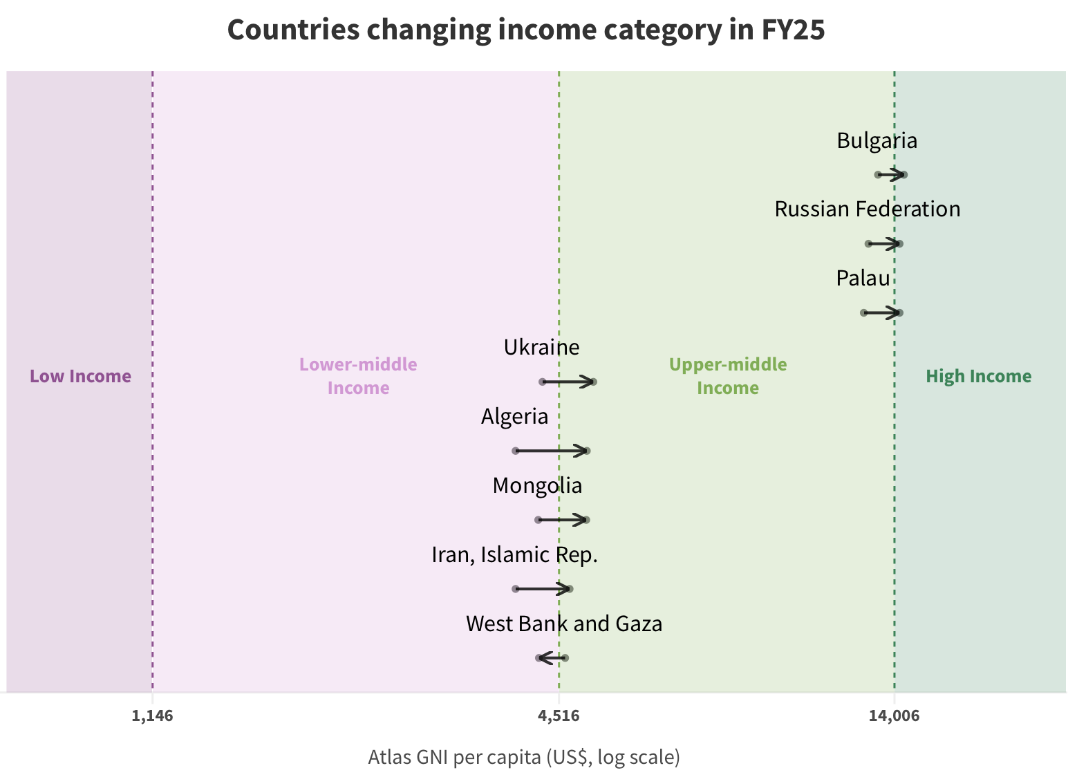 Countries with a GNI per capita between $4,496 and $13,935 in 2024