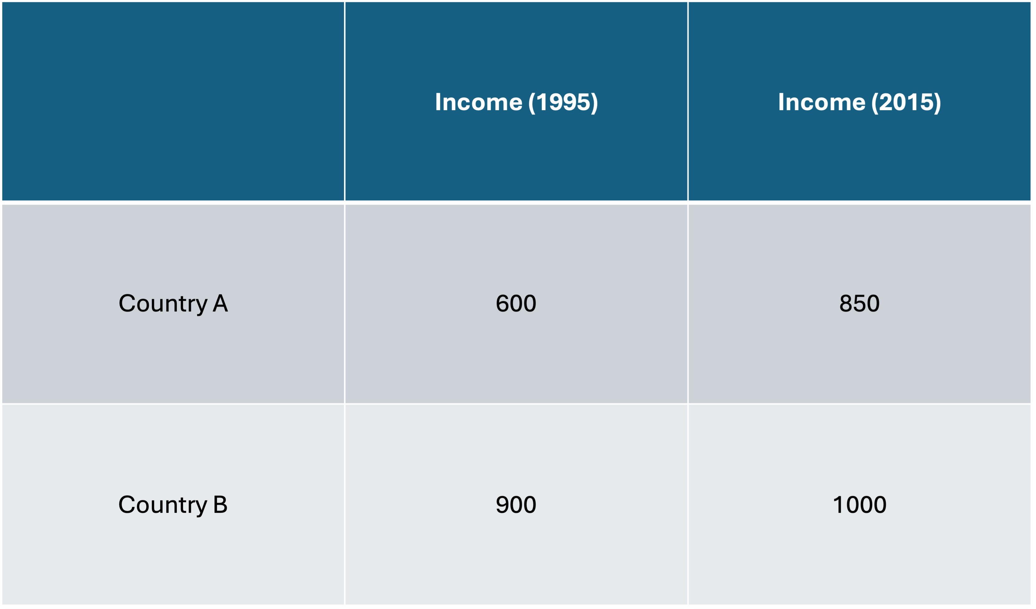 We will use incomes to measure convergence (not perfect but it does the job). Additionally, we will look at growth rates of incomes.