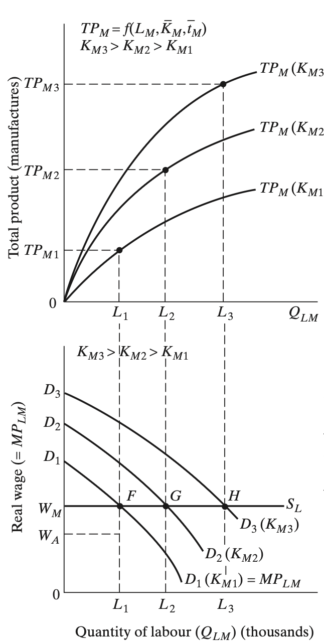 The speed at which the industrial sector grows is determiend by investment and capital accumulation in that sector
