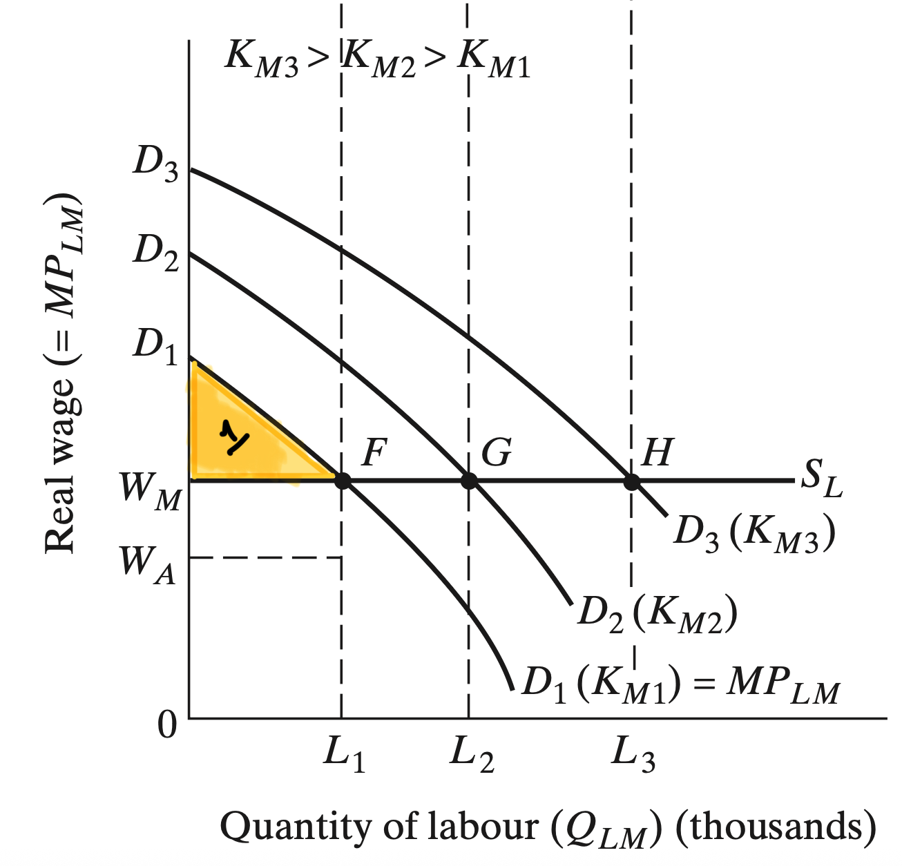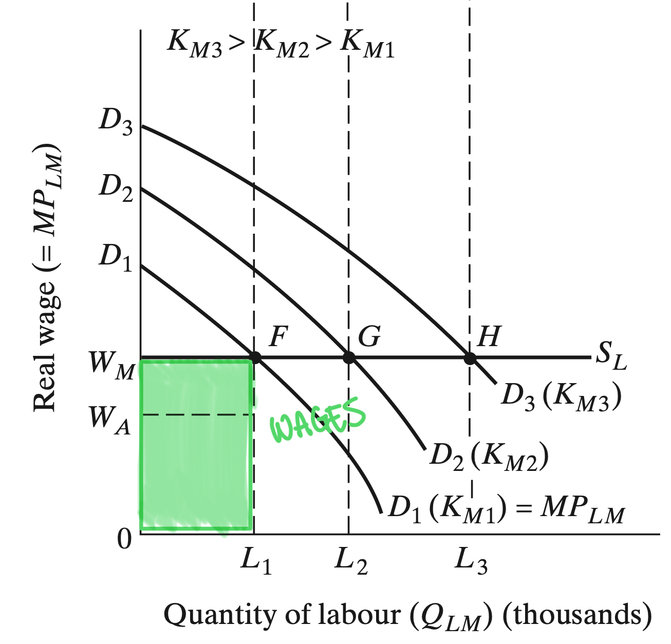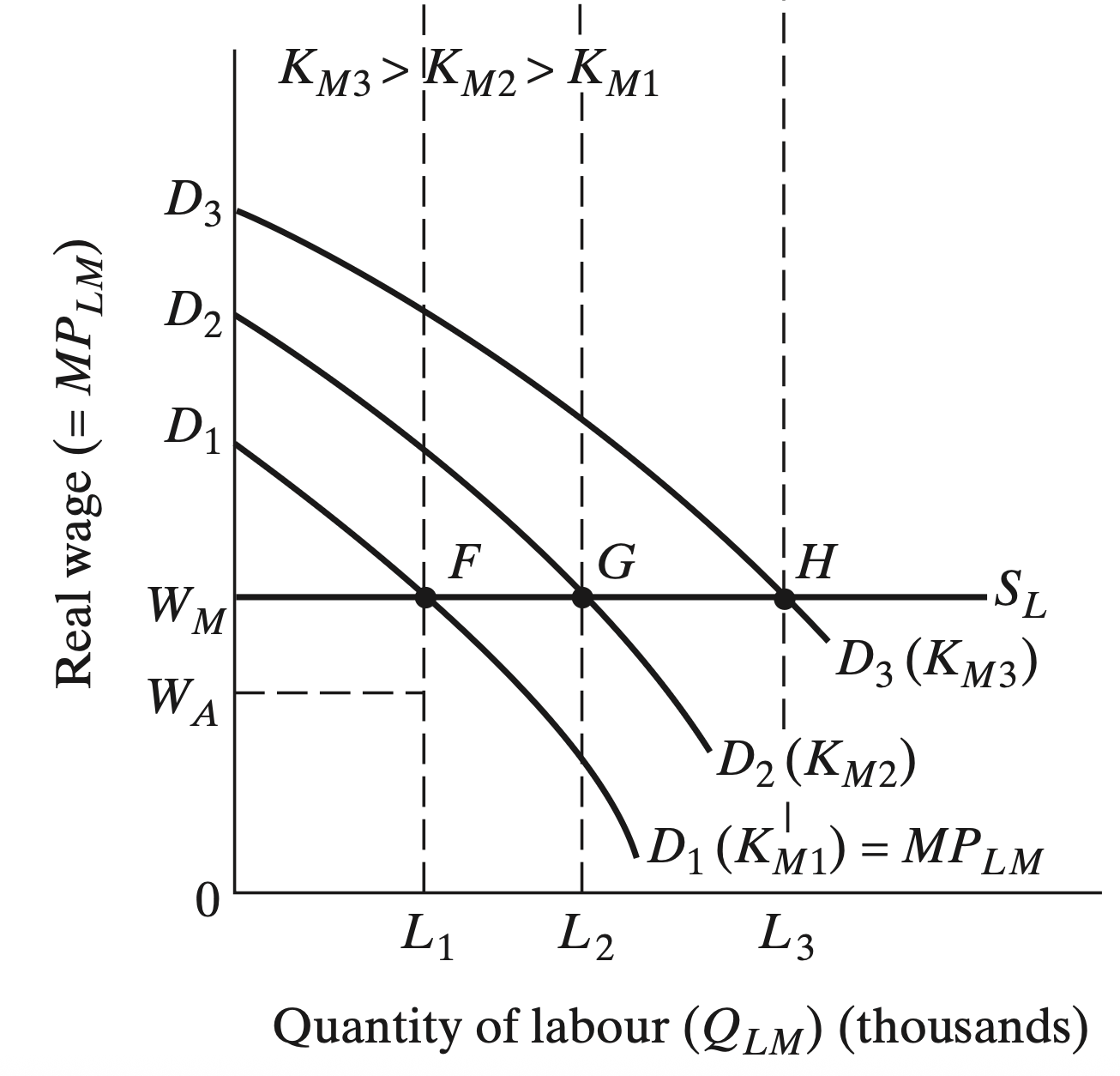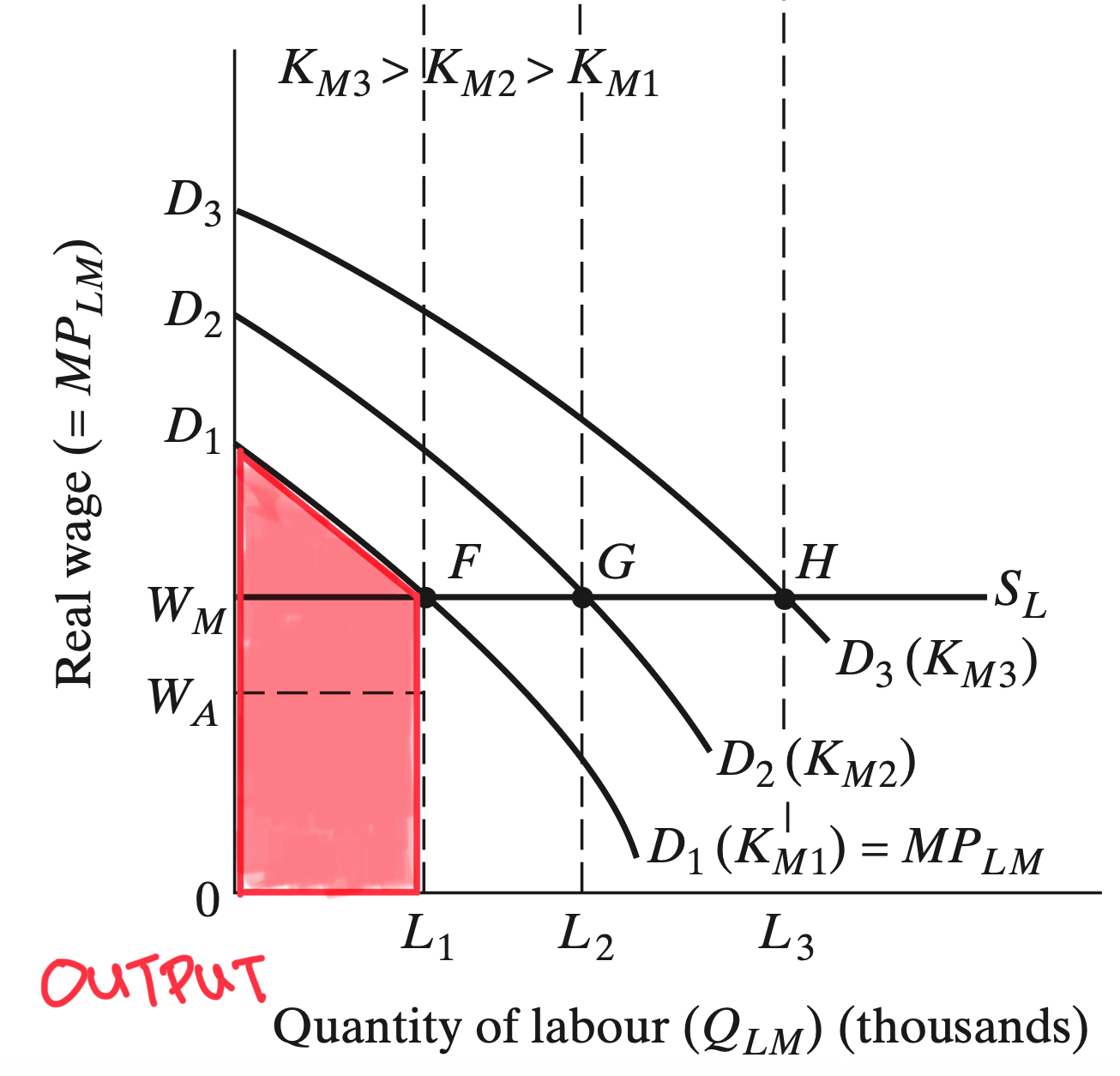 2. A fixed amount of Capital \((K)\) is need to produce output