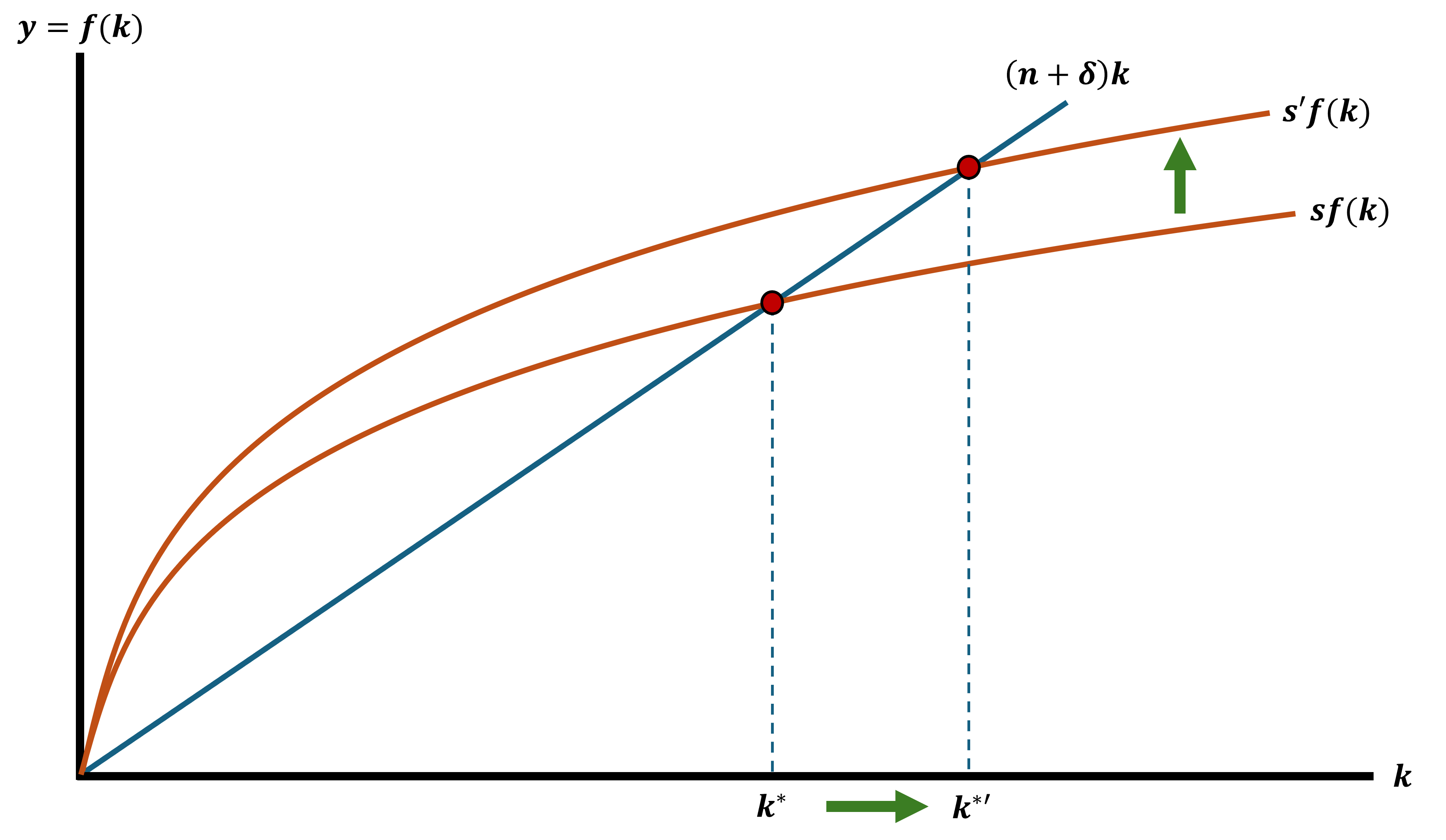 \(\Delta k\) \(=\) \(sf(k)\) \(-\) \(nk\) \(-\) \(\delta k\)