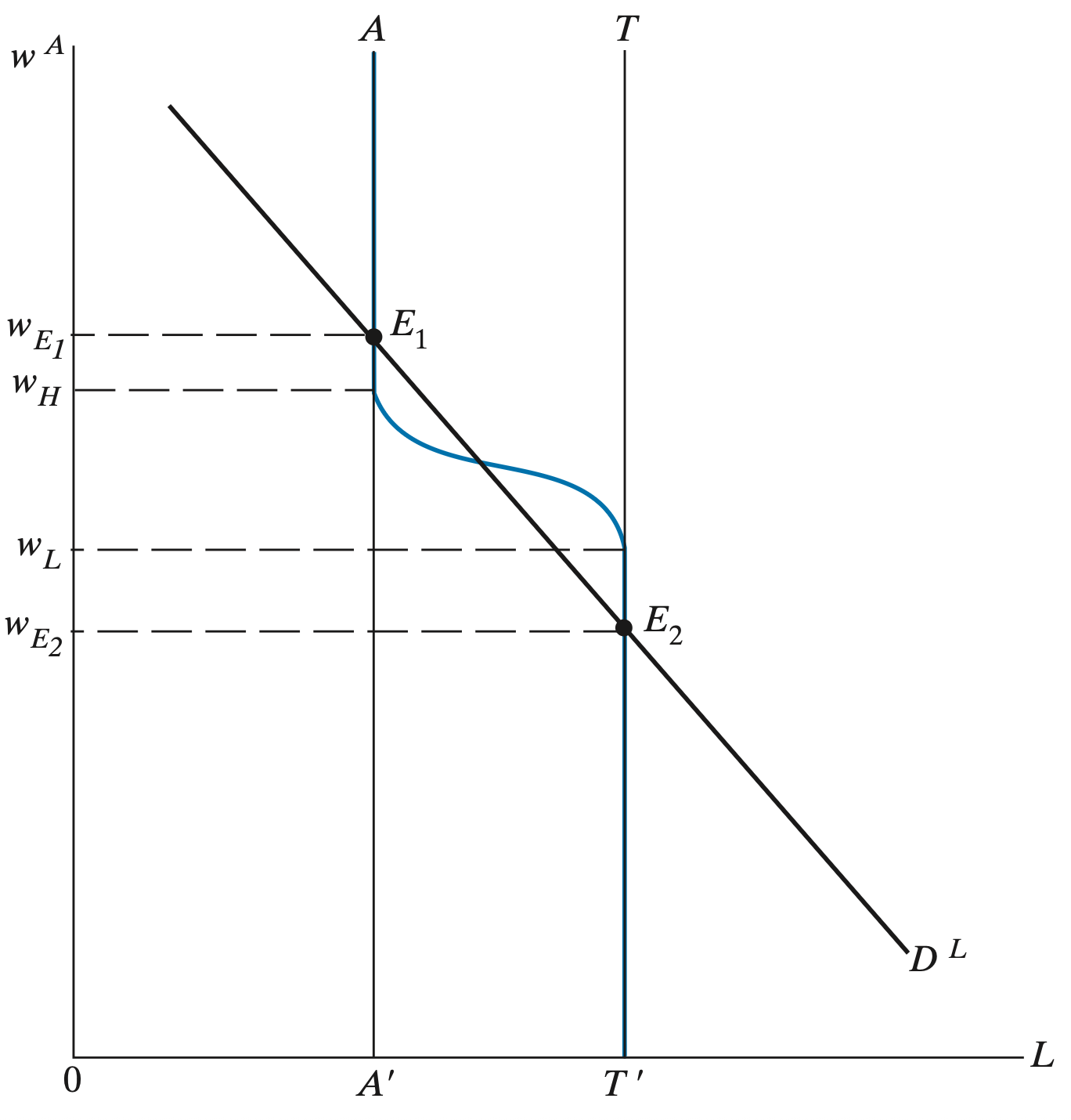 Given our setup, this means that the socially optimal level of education is less than individually optimal level of education