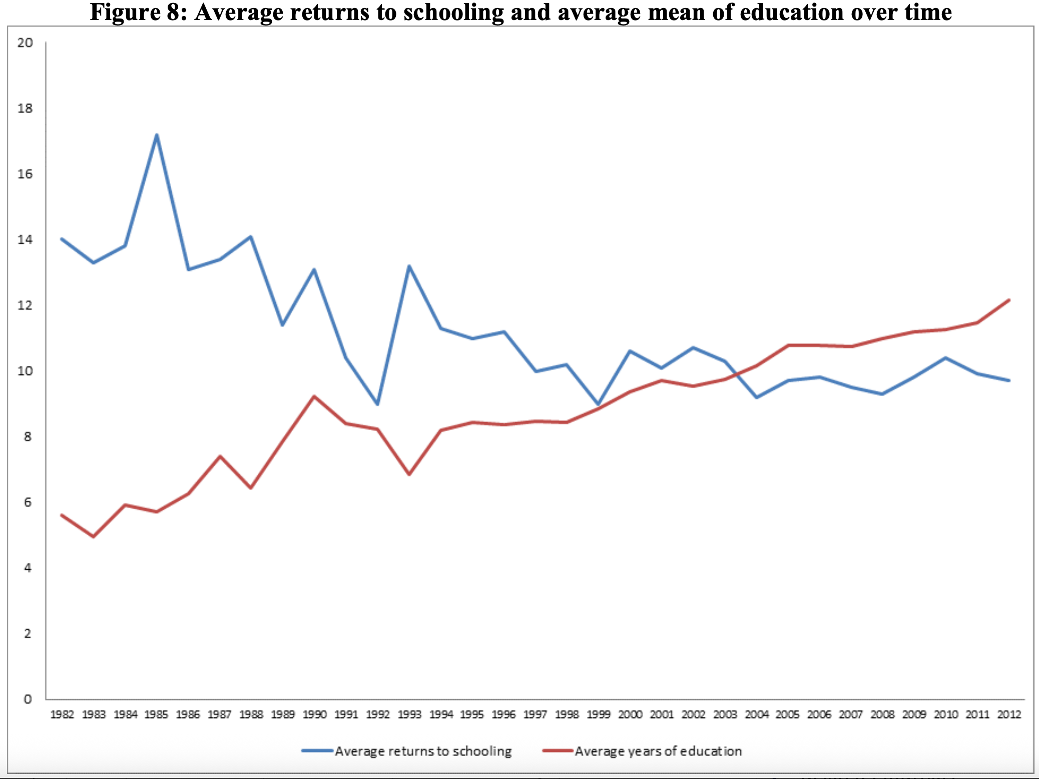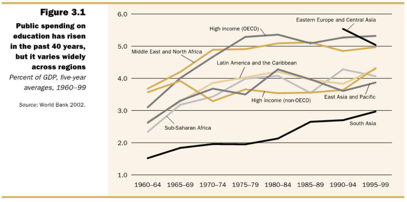 Despite these advances in availability of education, the growth effects have been dissapointing