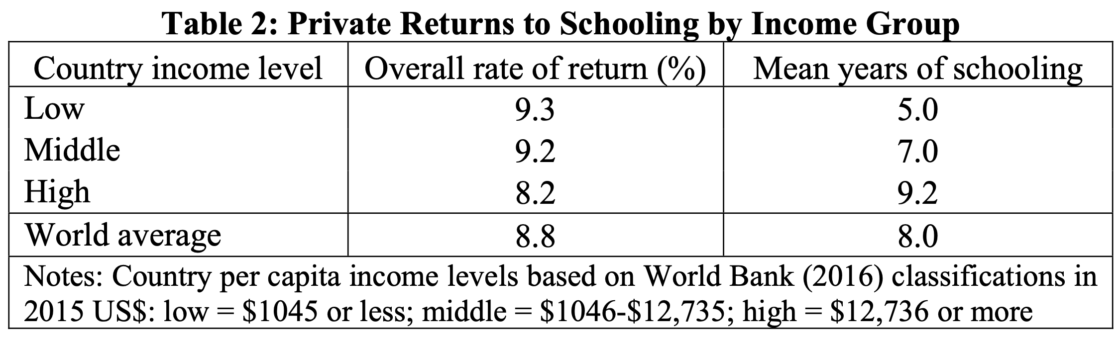 Education plays a key role in the ability of a developing country to absorb modern tech and develop the capacity for self-sustaining growth and development
