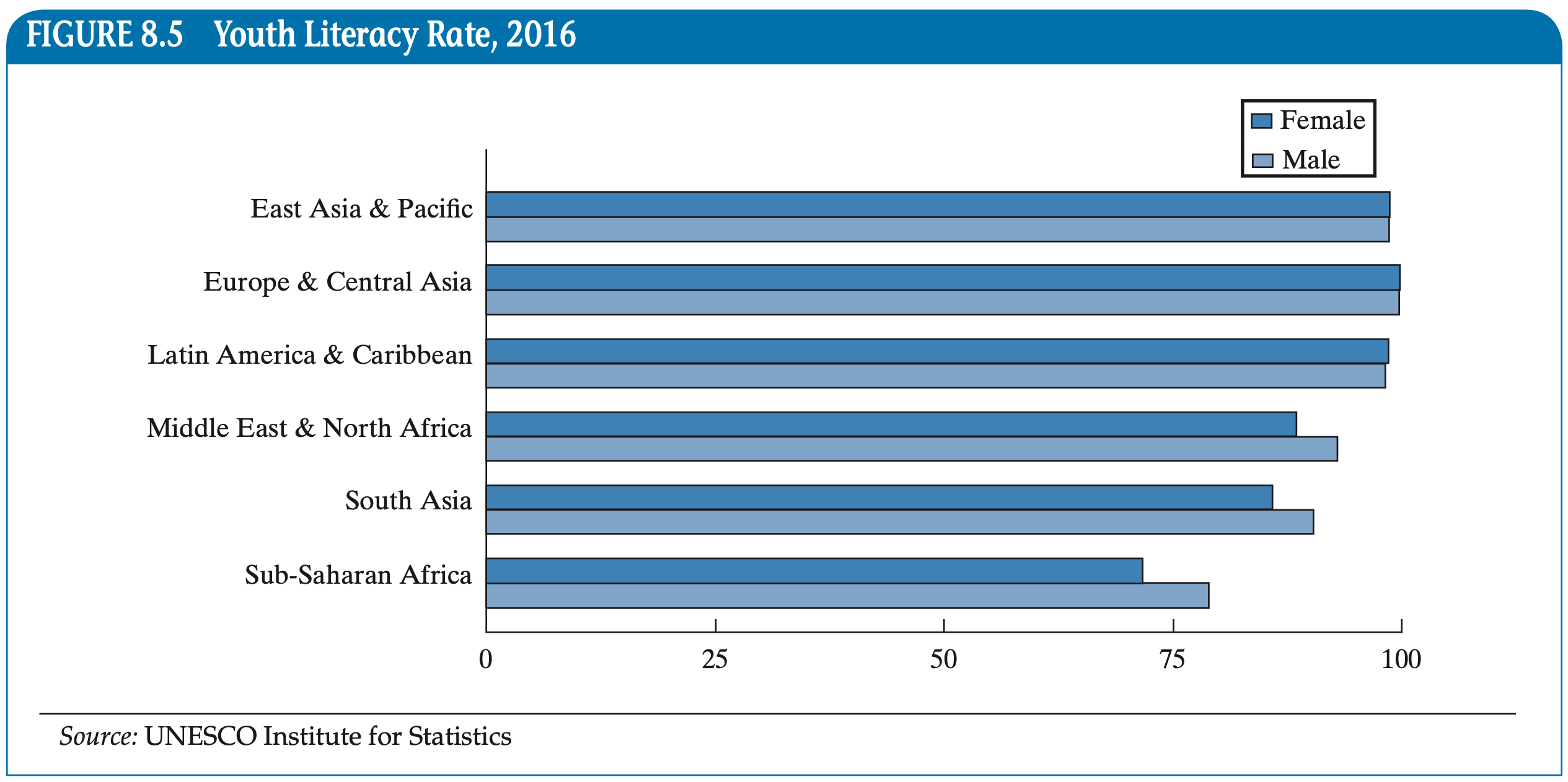 This educational gender gap is greater in the least-developed countries in Africa and in South Asia