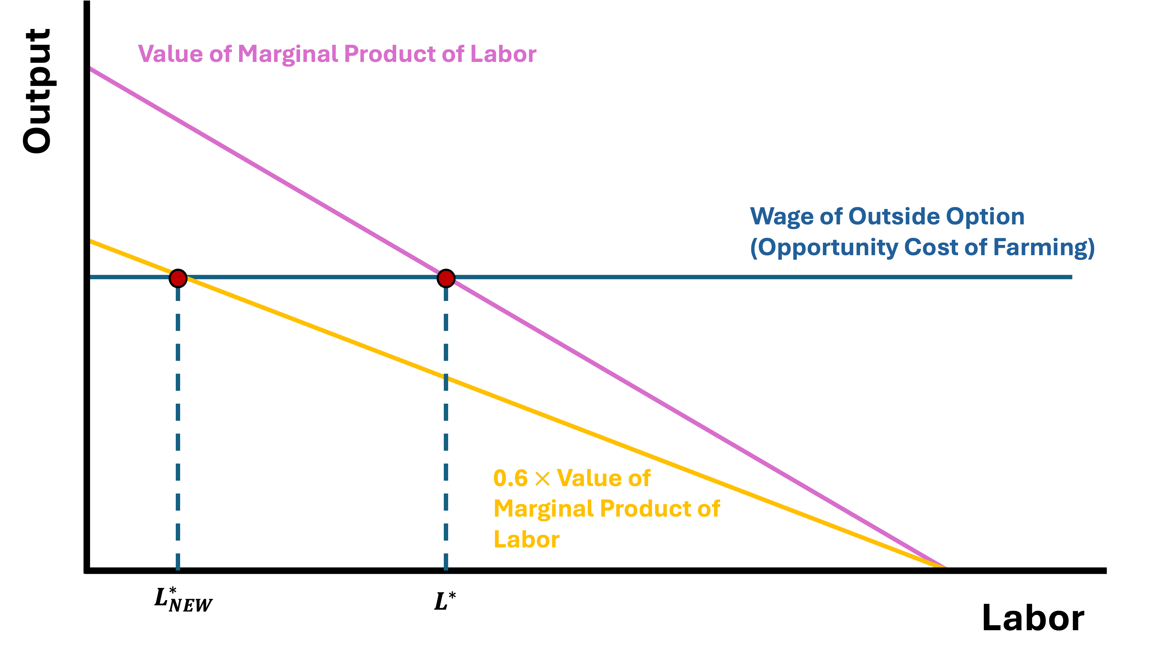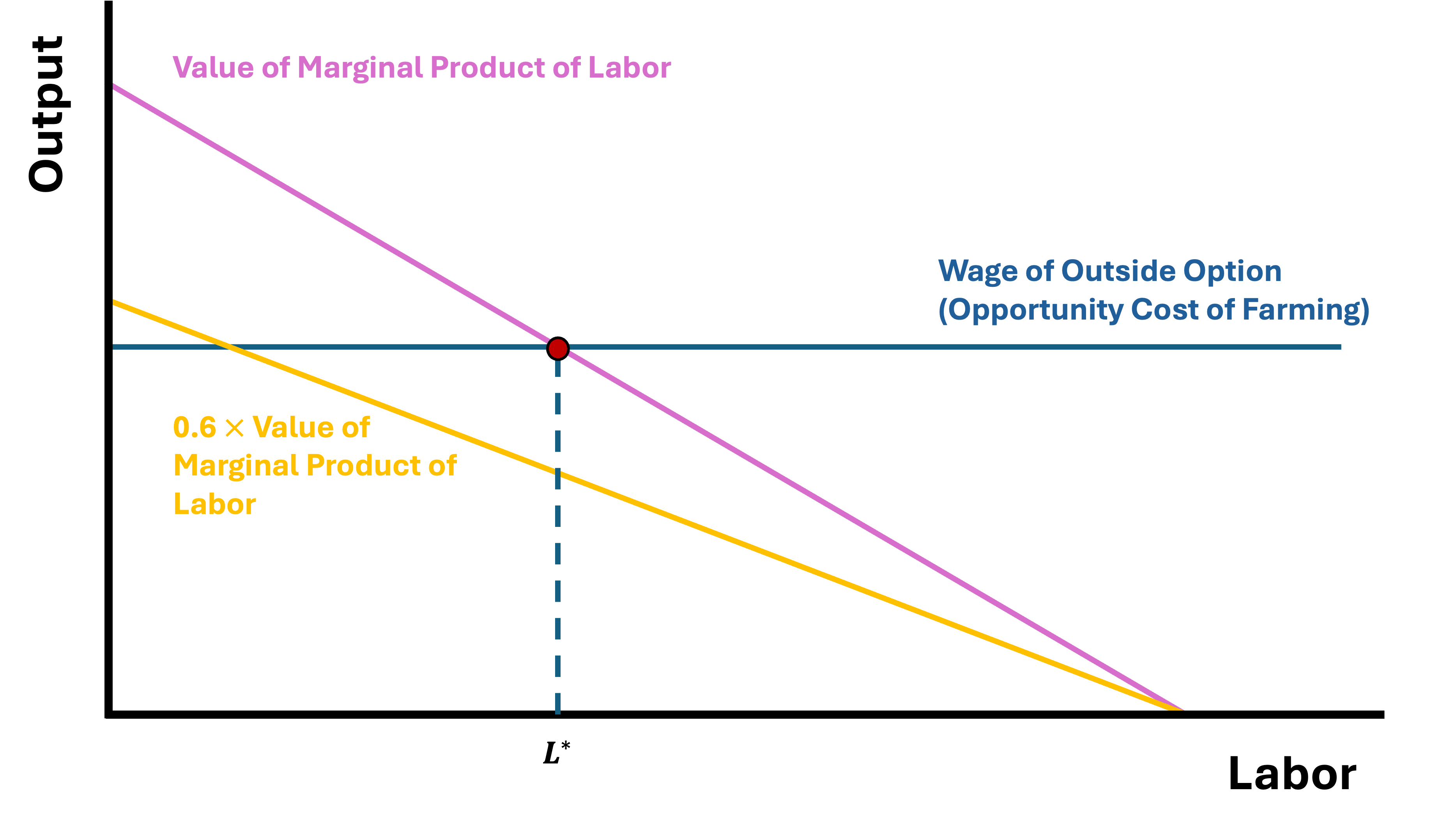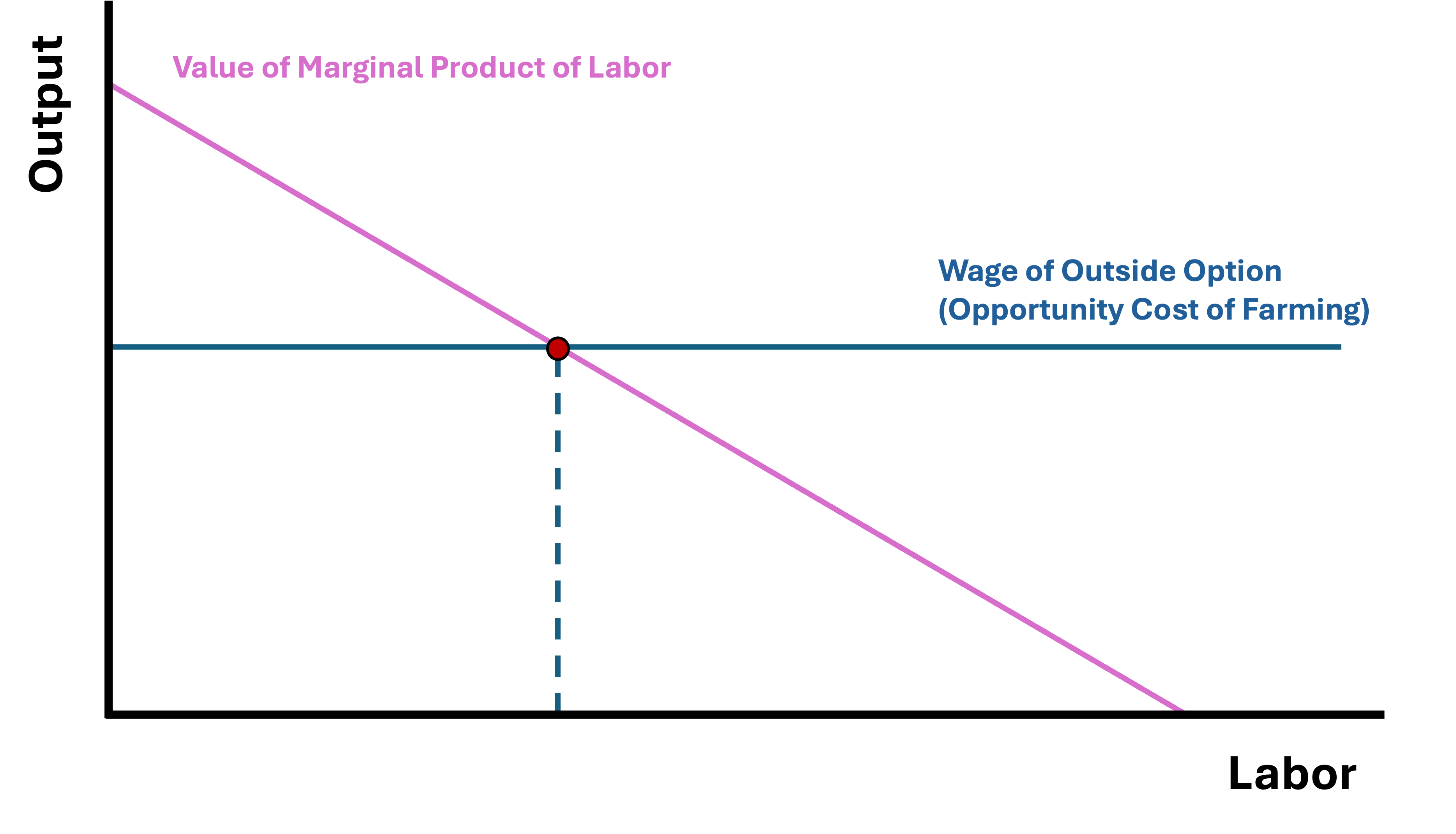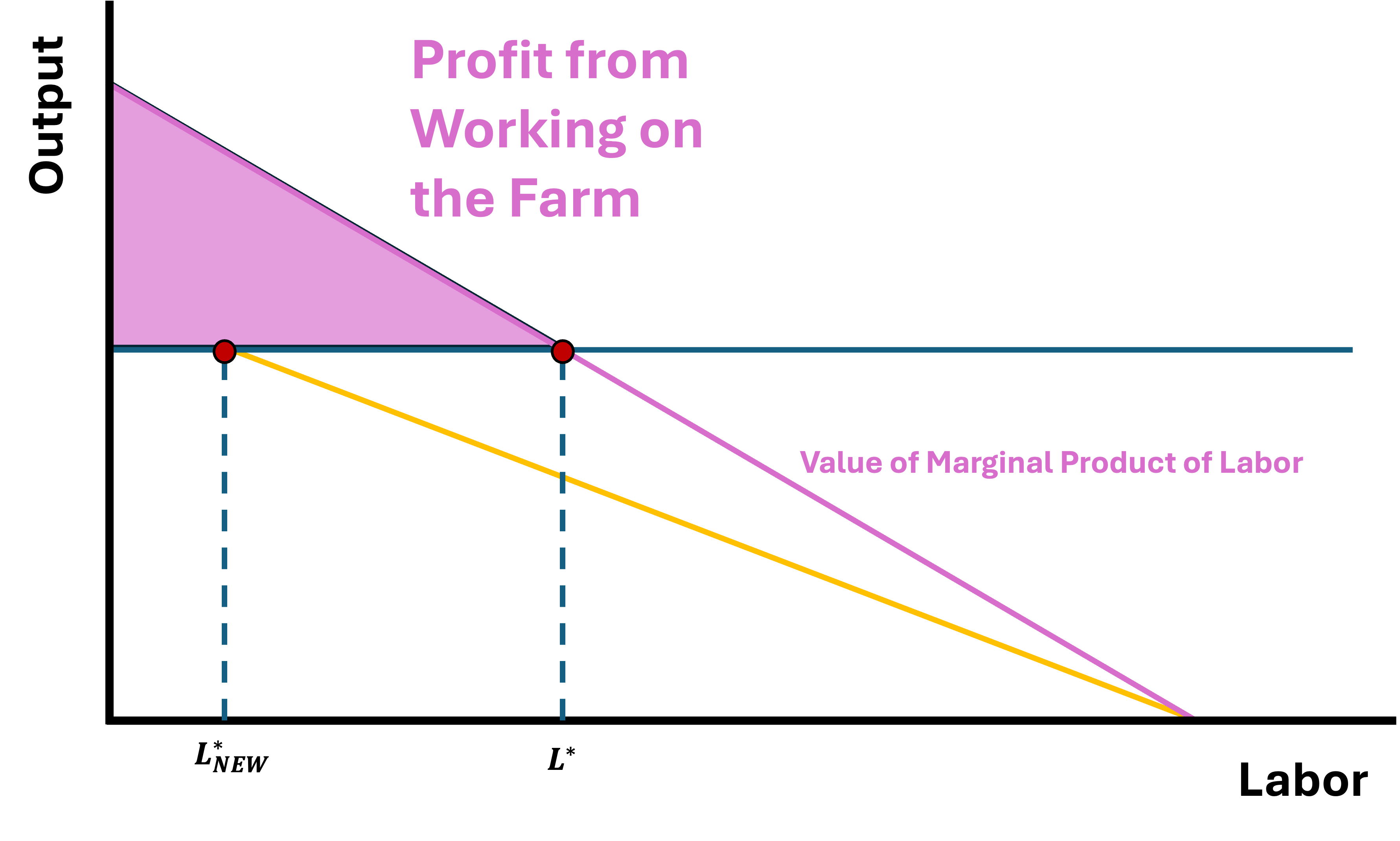 If we think of profit in this market as the difference between VMPL and Opportunity Cost, then profit from working on the farm is given by