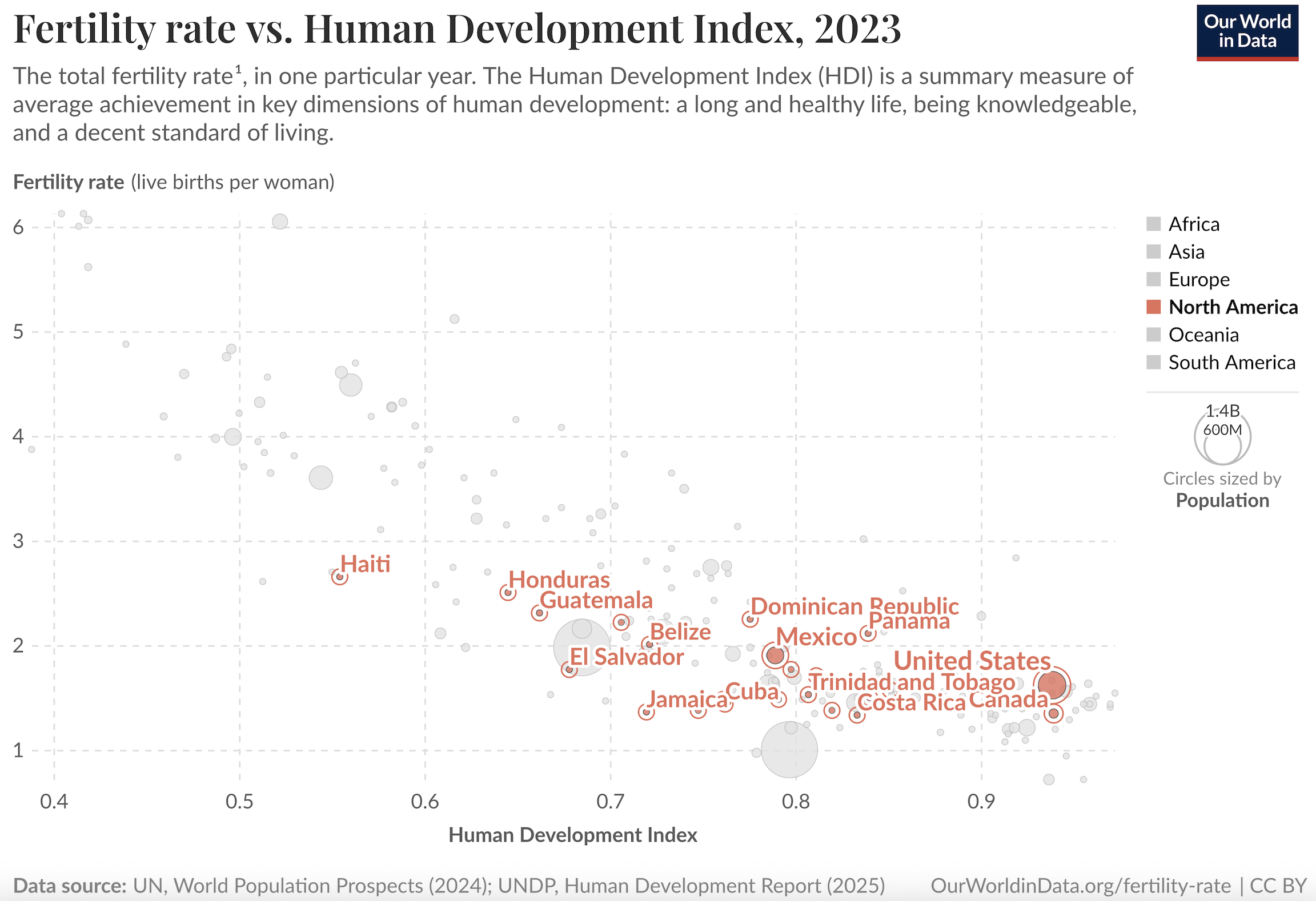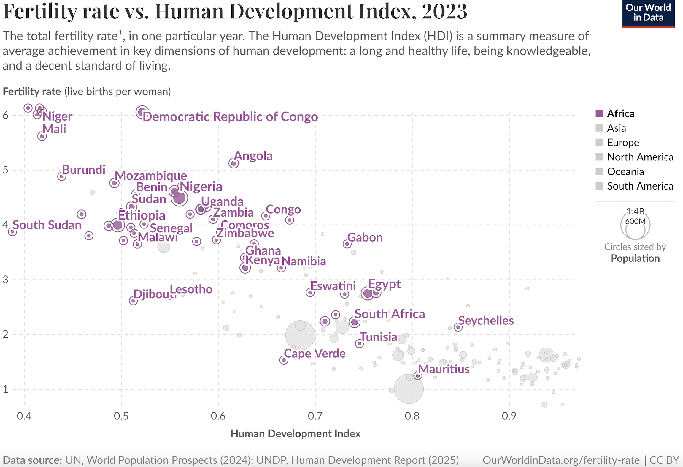 Not surprisingly development and fertility are negatively correlated