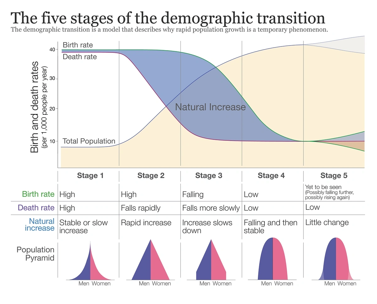 All contemporary developed nations have more or less passed through the same four stages of modern population history