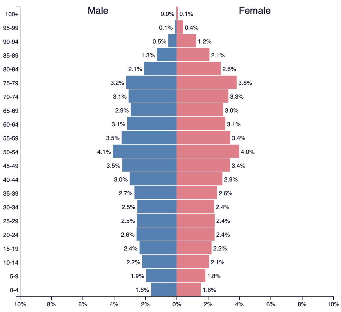 Societies experience stable or even shrinking populations as fertility may fall below replacement levels